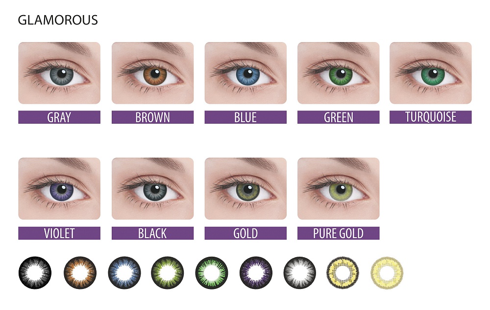 Линза может использоваться для перекрытия своего родного цвета глаз, так и для тонирования его цвета. Подходят для темных и светлых глаз.